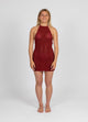 The Newport Mini Dress features a front tunnel tie and adjustable straps for a custom fit. Made from pinstripe chambray, it offers a fresh, easygoing style. Shown here in Chambray.