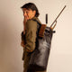 Stand with your heels together, keeping tape straight and perpendicular to the floor. Measure from the high point of your shoulders down the length of your back.